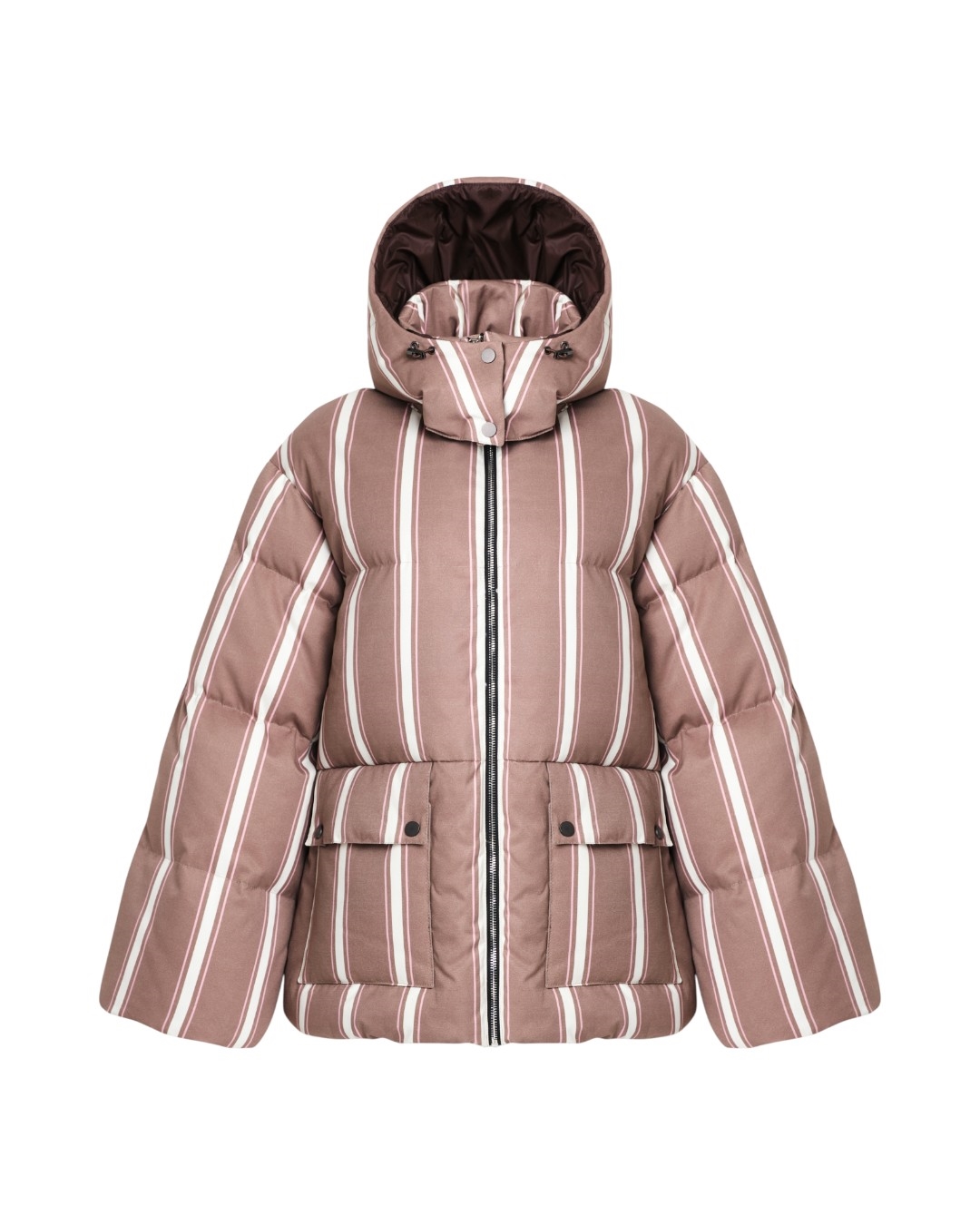Объёмный базовый пуховик, изготовленный из плотной хлопковой ткани с пропиткой, обладающей высокими водоотталкивающими свойствами. Внутри — наполнитель из тёплого и лёгкого утиного пуха. Комфортная модель для города, не стесняющая движений, дополнена съёмным капюшоном. Застёжка — молния с ветрозащитной планкой; под ней — гарантия комфорта и защиты от холода.
