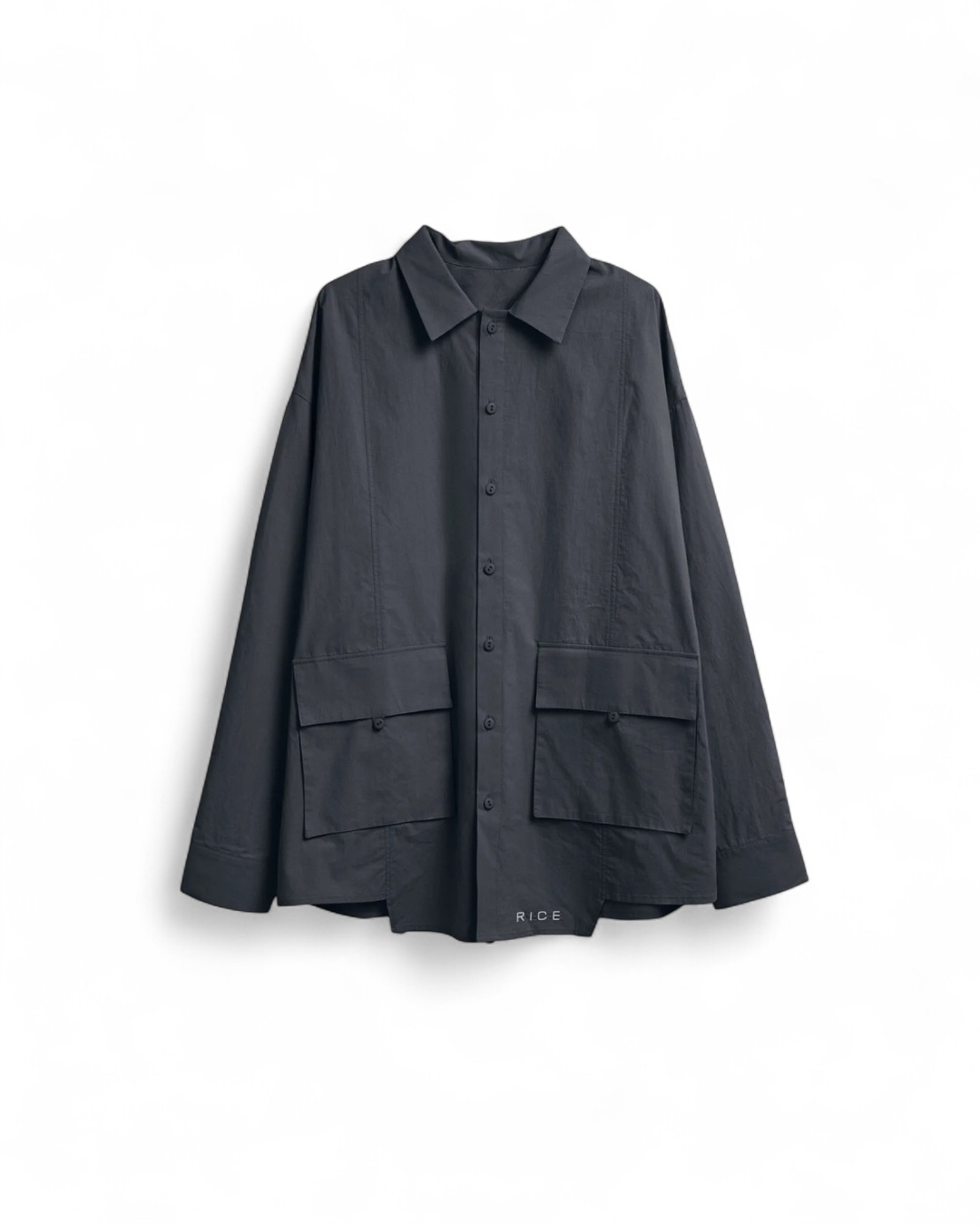 Рубашка с воротником и длинным рукавом, большие накладные карманы с клапаном по бокам, рельеф по полочке и фирменный лого. На спинке аккуратный защип.