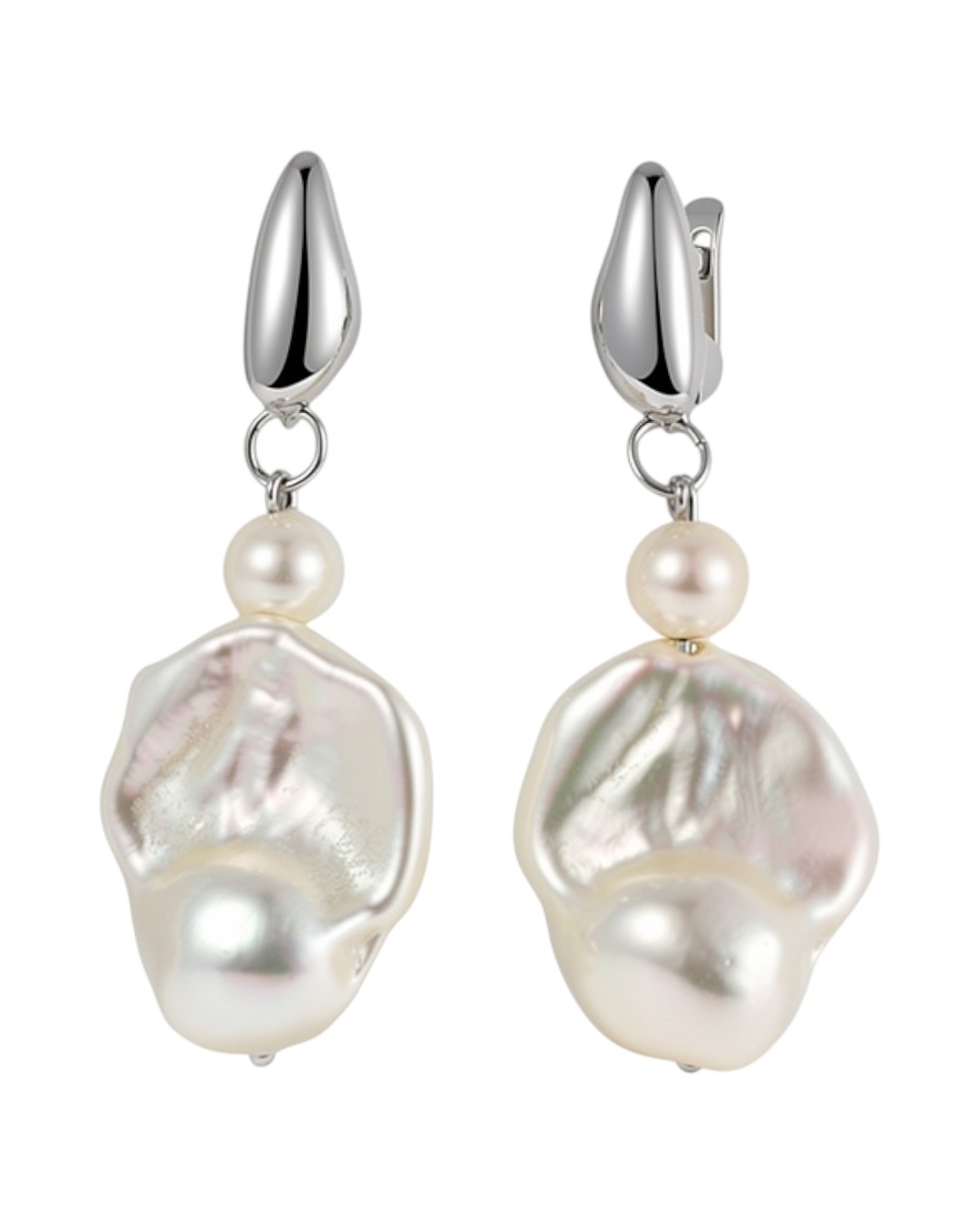Серьги из крупного жемчуга и бусиной сверху с серебряной застежкой
