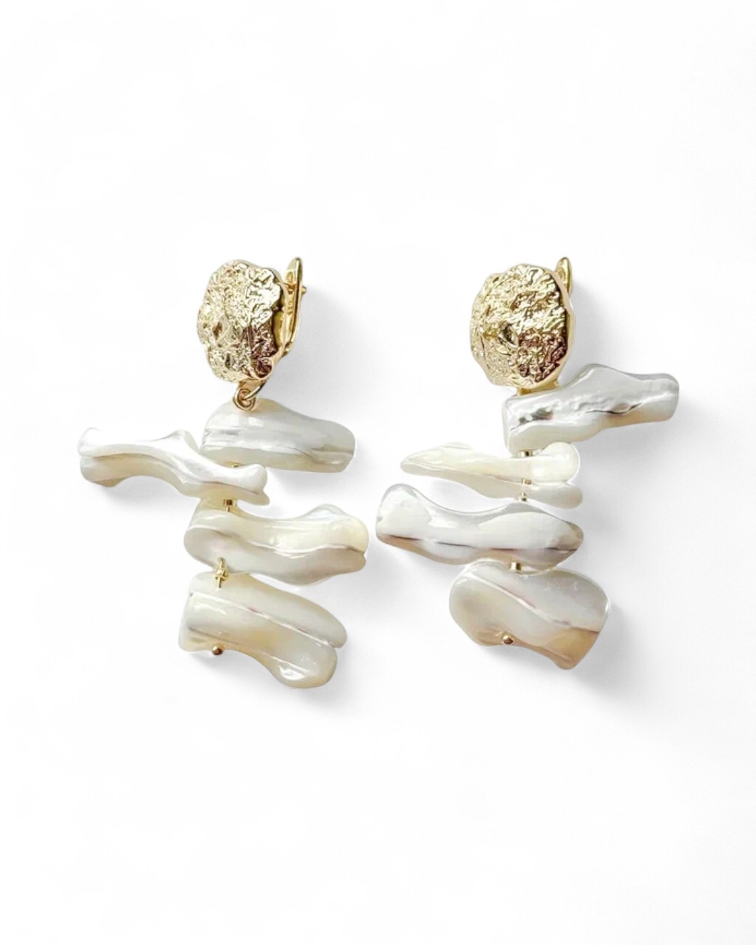 Серьги в золоте с подвеской из ломаного  перламутра