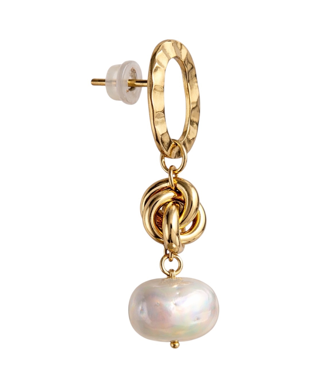 Серьги с жемчугом Майорка с узлом, золотая овальная основа.
