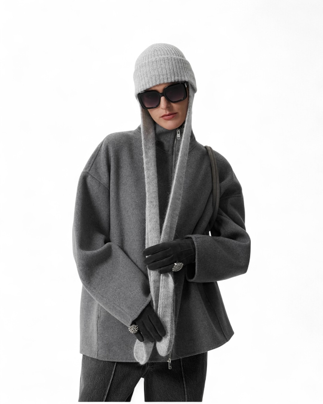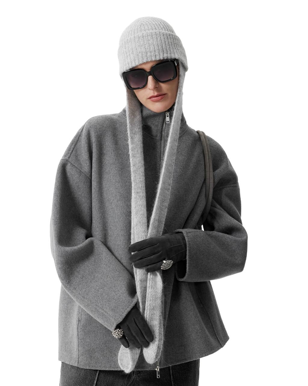 − Оригинальная форма с отворотом и длинными "ушами", создающая эффект двух изделий в одном: шапки и шарфа