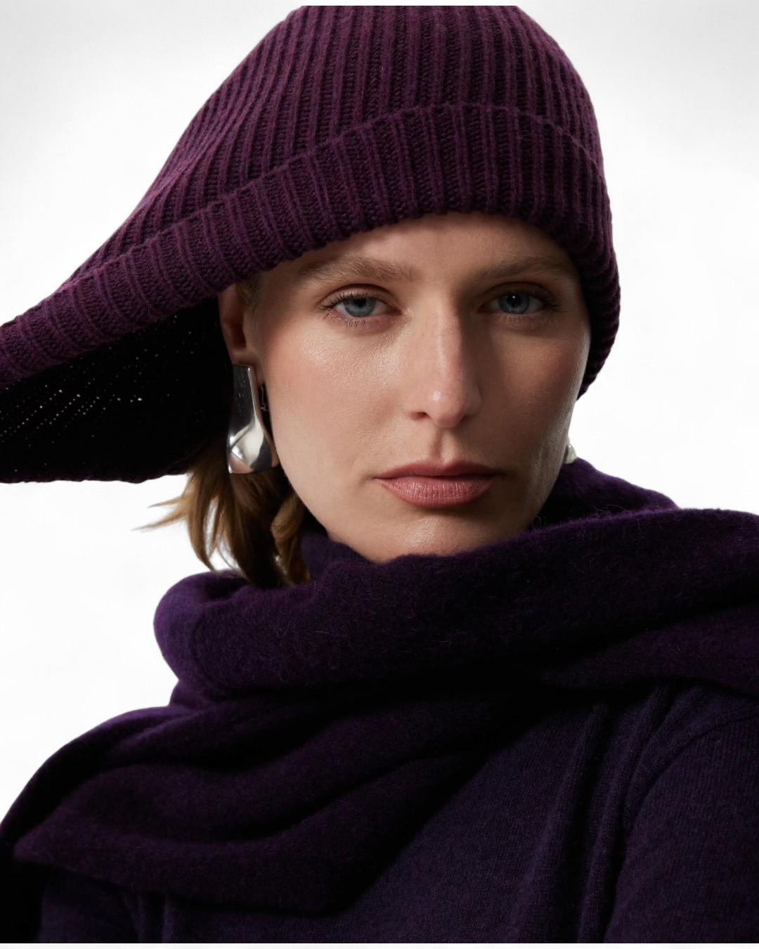 Тёплая шапка с широким отворотом проявит себя с лучшей стороны в холодное время года. Шапка связана рибом из смесовой пряжи с содержанием шерсти, очень приятной при тактильном контакте. Трендовый фиолетовый цвет, впитавший в себя все краски темного винограда, артишока, инжира, делает шапку стильной, отлично вписывающейся и в монохромные комплекты, и в аутфиты, построенные на контрасте, в которых шапка — бесспорный акцент.