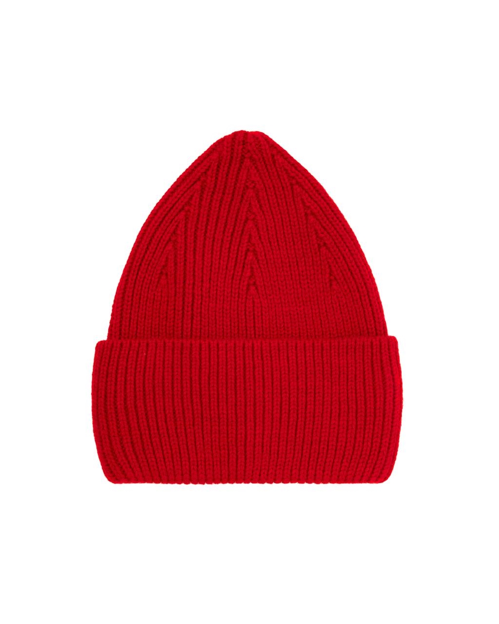Тёплая шапка с широким отворотом проявит себя с лучшей стороны в холодное время года. Шапка связана рибом из смесовой пряжи с содержанием шерсти, очень приятной при тактильном контакте. Трендовый томатный оттенок красного цвета делает шапку модной, отлично вписывающейся и в монохромные комплекты, и в аутфиты, построенные на контрасте.