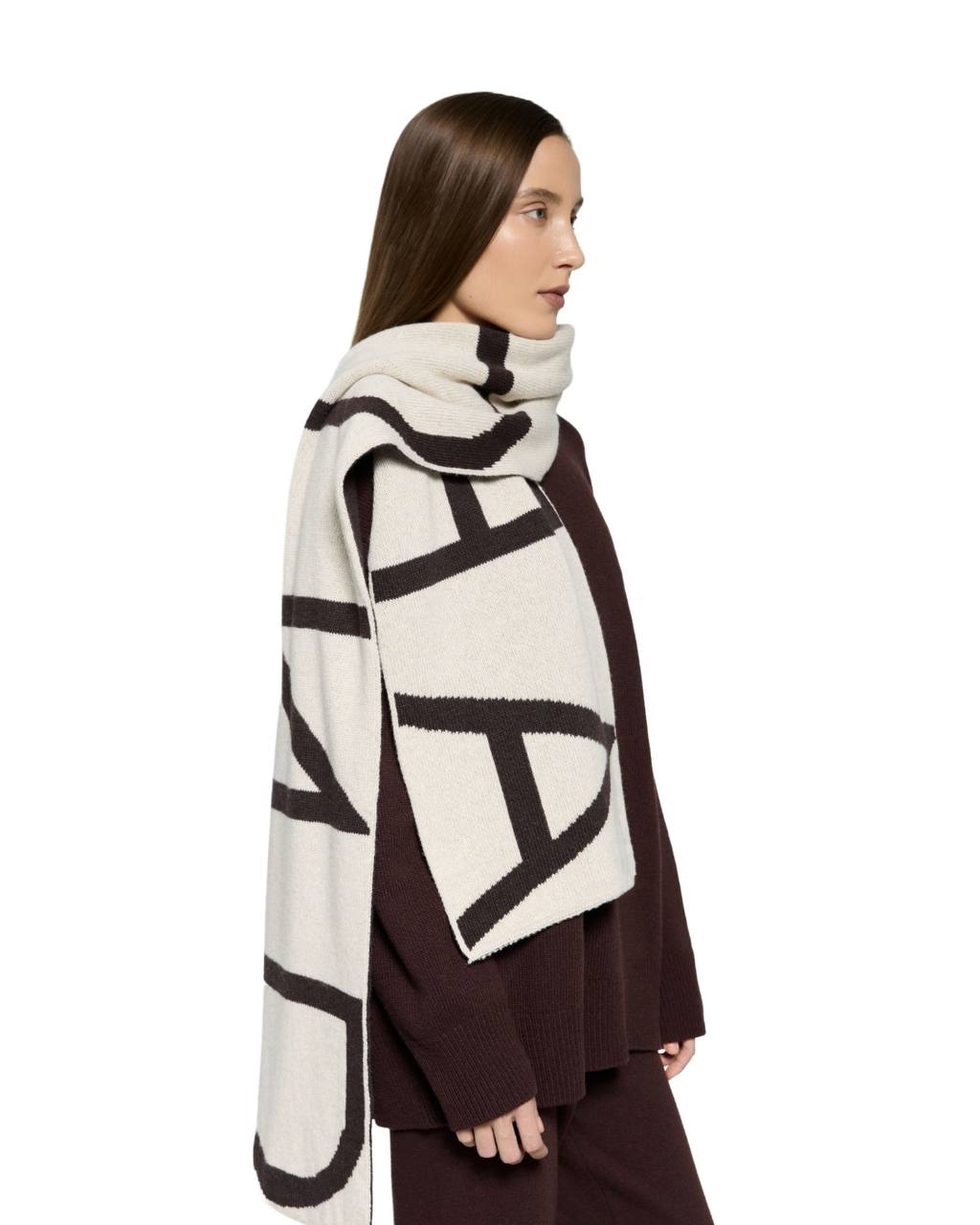 Двухслойный и двухцветный шарф с вывязанной с обеих сторон надписью AROUND во всю длину. Шарф связан из микса кашемира, шерсти мериноса и вискозы; нежной и комфортной к коже пряжи, сделанной в Италии.