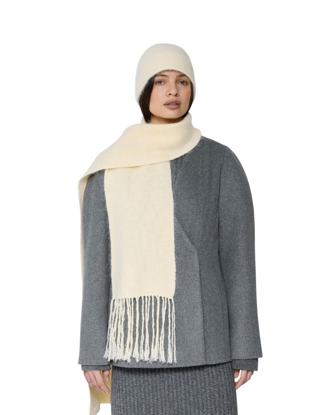 Обрамление шарфа бахромой ассиметричное — есть только с одной стороны. Неклассический вариант среди зимних и демисезонных аксессуаров, который тем не менее легко вписать в гардероб.