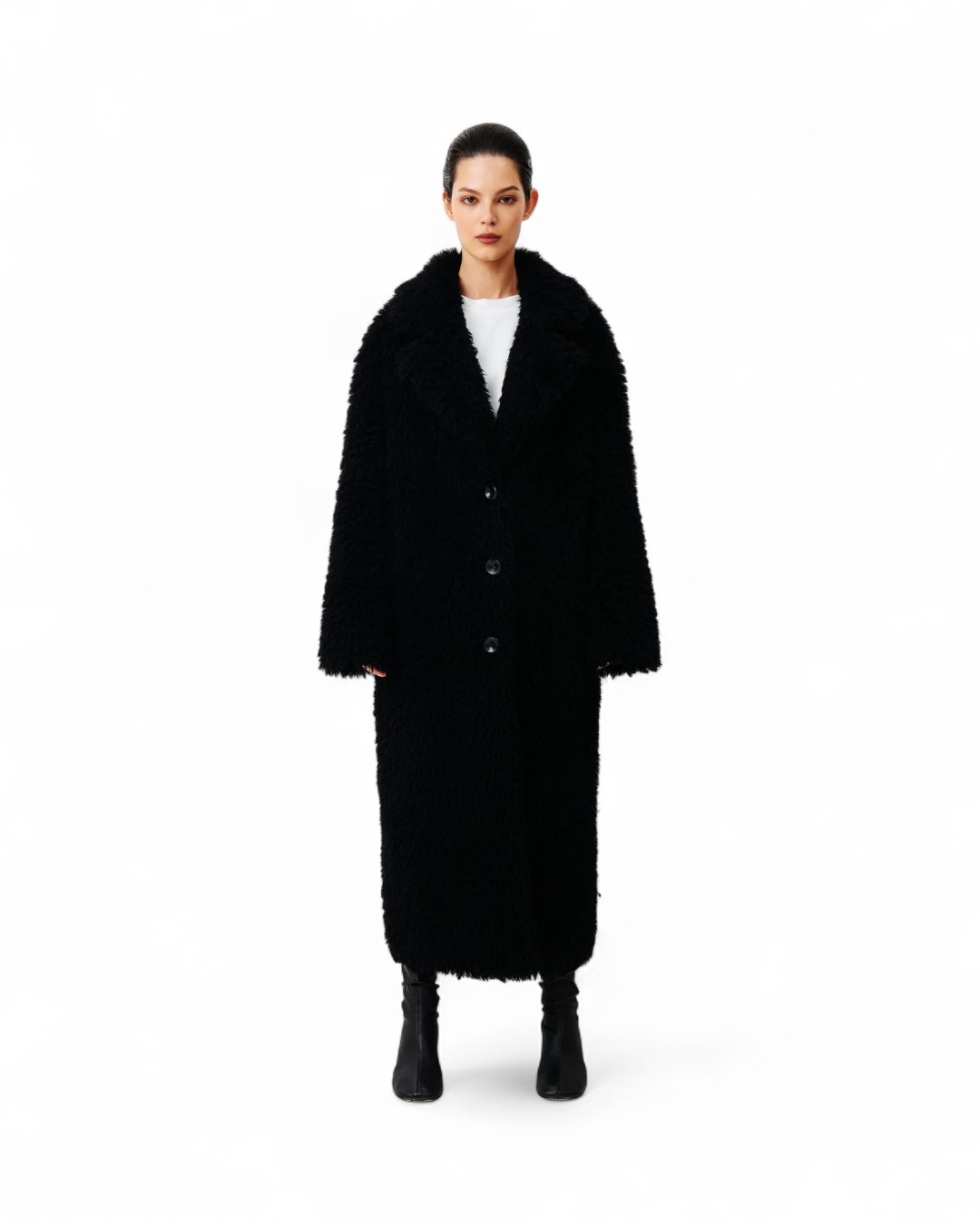 Шуба выполнена из натуральной шерсти испанского мериноса. Изнанка – искусственная замша. Температурный режим до -25 градусов.