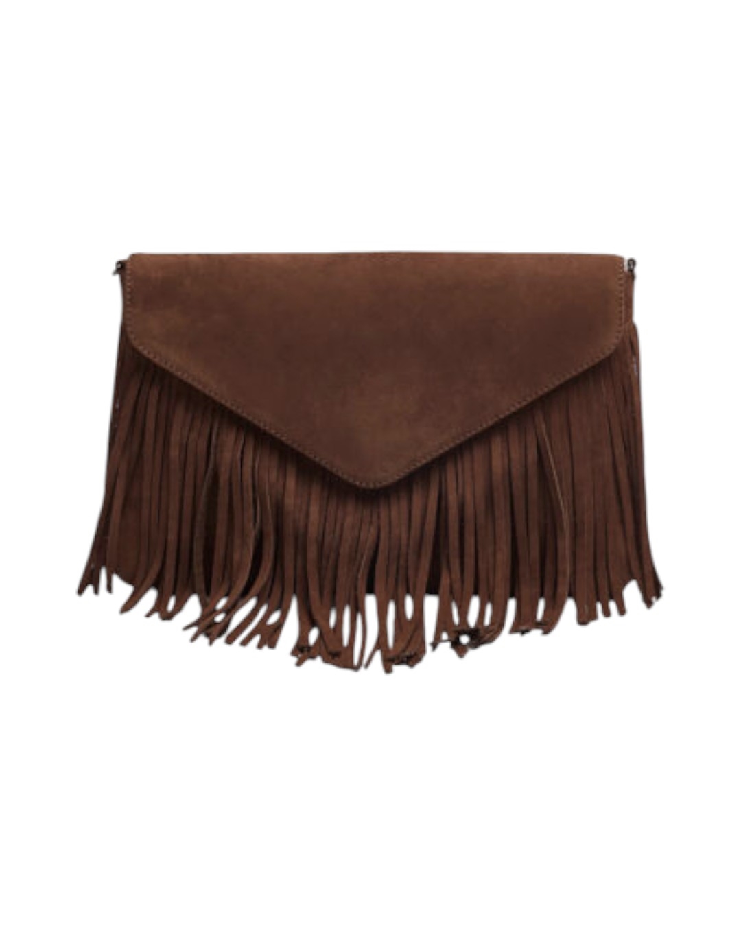 Модель Flamenca выполнена из мягкого нубука и украшена длинной бахромой — главным акцентом модели. Простая форма и чёткие линии подчёркивают текстуру материала и делают образ лаконичным. Внутри — плотная подкладка и карман для мелочей. Удобная петля позволяет носить сумку на запястье. Flamenca легко вписывается в повседневный гардероб и добавляет лёгкое бохо-настроение.