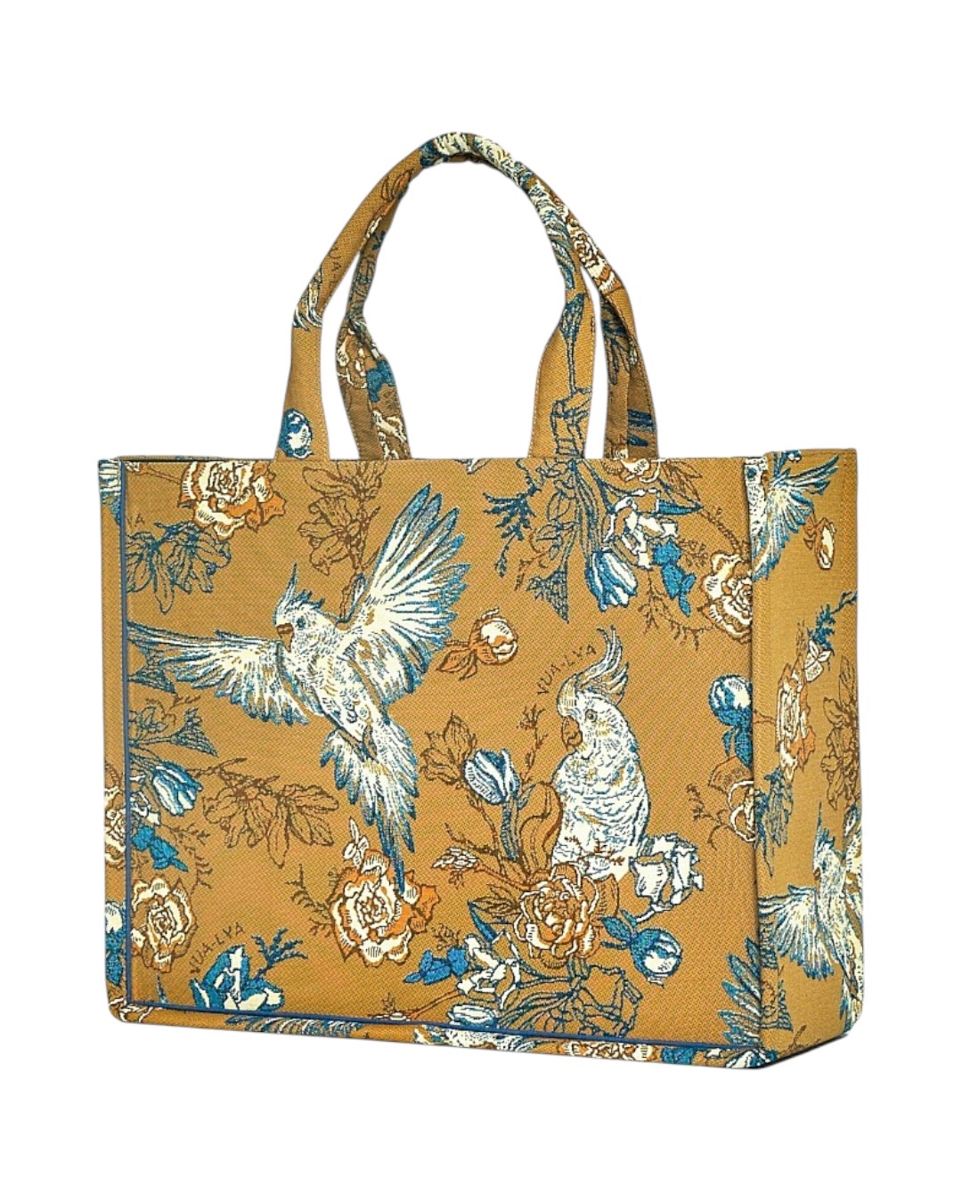 Вместительный прямоугольный тоут из гобеленовой ткани премиум-качества и льняным кантом. Продуманные ручки позволяют носить сумку на плече или в руках.