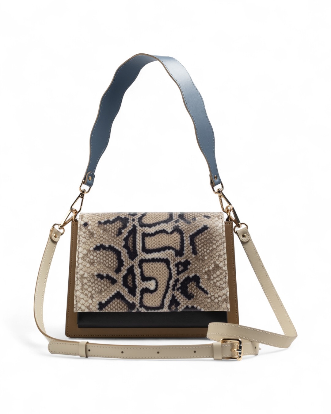 Благодаря большому количеству цветов сумку Urban легко комбинировать с различными образами. В комплекте два ремня: длинный узкий и и короткий широкий, а также обвес из натуральных камней.