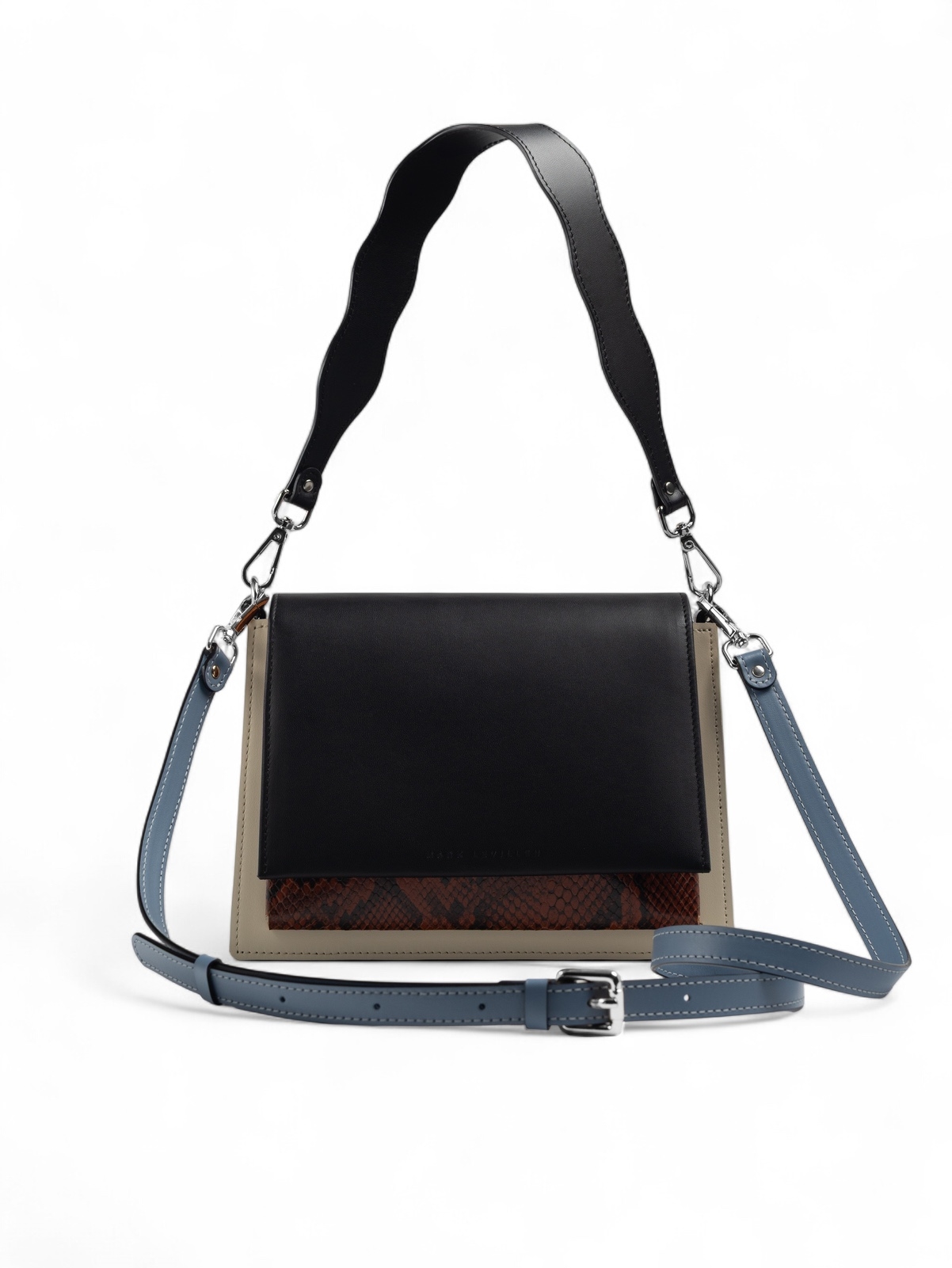 Благодаря большому количеству цветов сумку Urban легко комбинировать с различными образами. В комплекте два ремня: длинный узкий и и короткий широкий, а также обвес из натуральных камней.