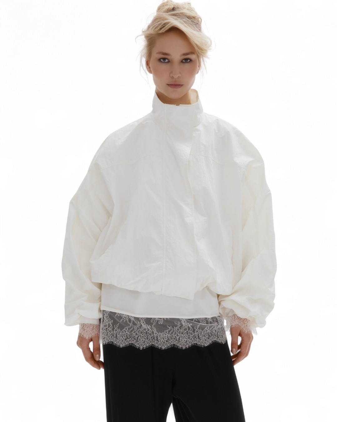 Магнитная планка, скрывающая застежку, обеспечивает чистоту линий и элегантность. Легкая объемность кроя, и деликатные кулиски на манжетах и подоле позволяют идеально настроить посадку по настроению.