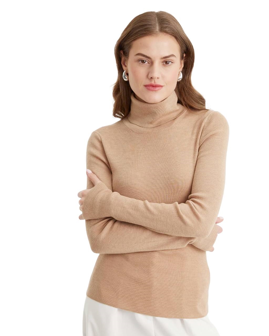 Классическая водолазка в рубчик из 100% шерсти мериноса extrafine. Плотно прилегающий силуэт, высокое горло с отворотом и длинный рукав. Выполнена из специально обработанной камвольной шерсти, благодаря чему водолазка имеет тонкую, мягкую и гладкую текстуру, не колется! Универсальный узор в рубчик или по-другому лапша позволяет сделать её незаменимым элементом гардероба. Водолазка теплая, хорошо тянется.