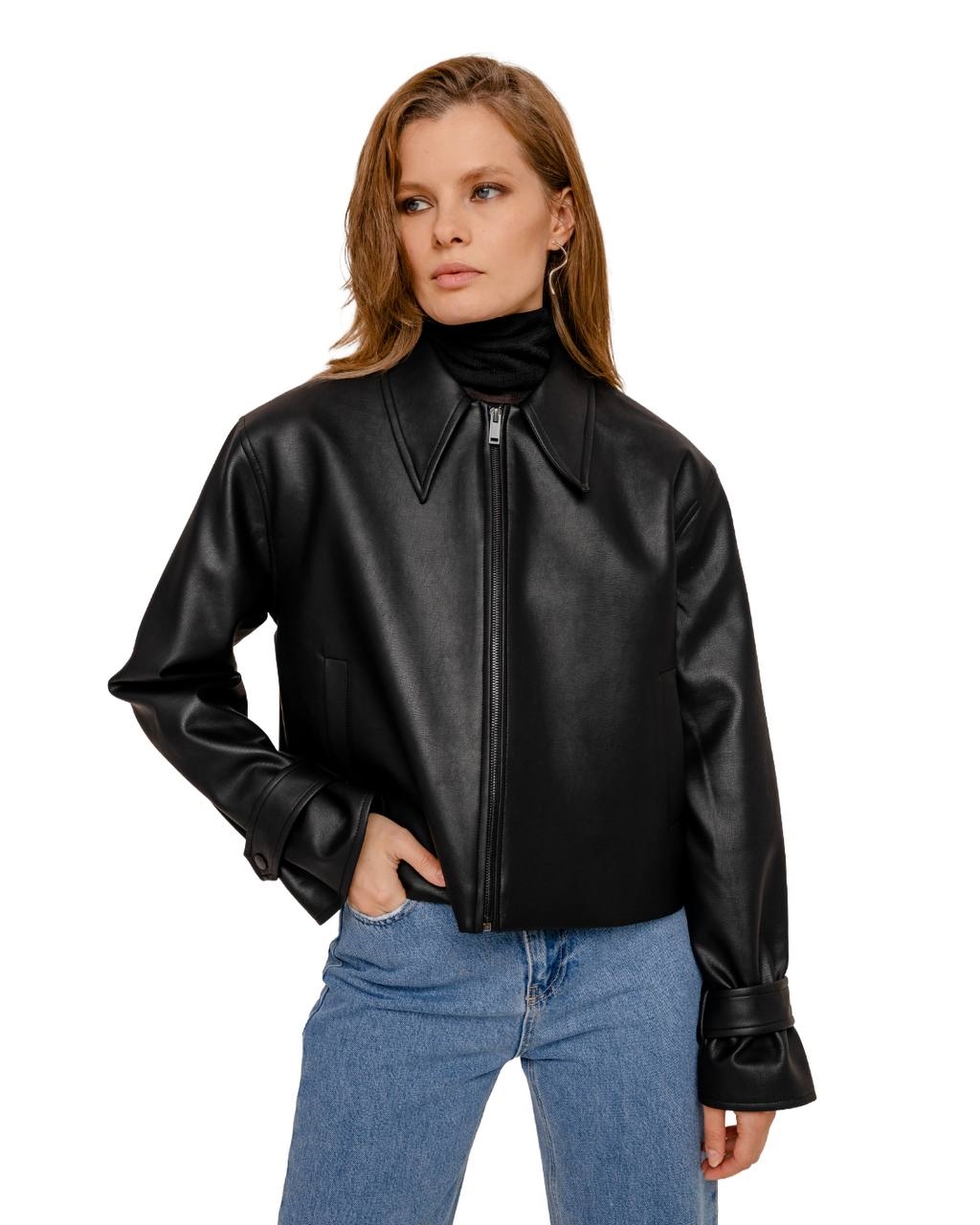 Жакет укороченный из экокожи