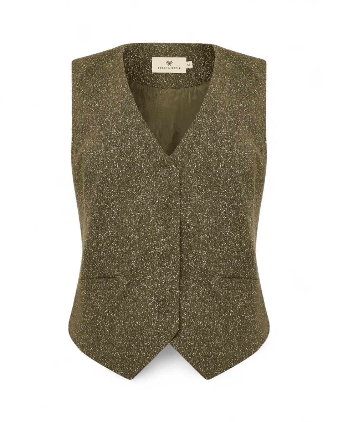 Приталенный жилет выполнен из костюмной ткани с добавлением шелка и шерсти. Классическая модель с двумя врезными боковыми карманами застегивается на пуговицы, обтянутые основной тканью. Жилет можно носить в сочетании с рубашкой или самостоятельно — в качестве альтернативы топу. В этом случае он придаёт образу лёгкость, сохраняя элегантность линий.