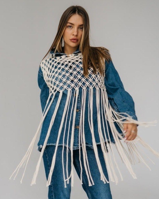 Трендовый жилет выполнен в технике макраме.