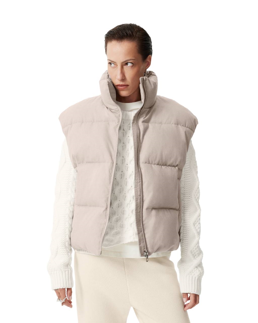 Стеганый жилет силуэта оверсайз на искусственном пуху — идеальная вещь для автоледи, которой не нужно кутаться в длинное пуховое пальто или объёмную куртку с капюшоном. Жилет благородного серо-бежевого цвета, выполненный из влагостойкой плащовки с особым меланжевым переплетением, придающим материалу вид дорогой костюмной шерстяной ткани, — олицетворение тепла, уюта, защищённости. Жилет имеет высокую стойку, застёгивается на серебристую металлическую молнию. Глубокие карманы-листочки создают удобство в эксплуатации вещи. Стеганый утеплённый жилет — прекрасный компаньон к уютным вязаным и трикотажным комплектам с джоггерами, цветовой и фактурный акцент аутфитов с джинсами, достойное завершение образов с брюками, юбками, толстовками, объёмными свитерами. Подкладка из тонкой плащовки создаёт комфортное скольжение при взаимодействии с изделиями первого слоя.